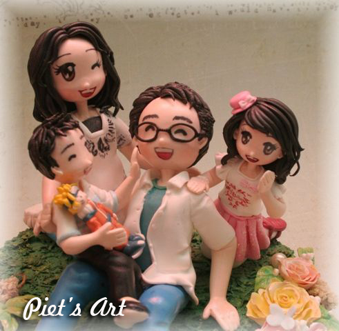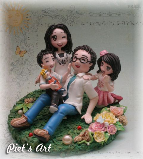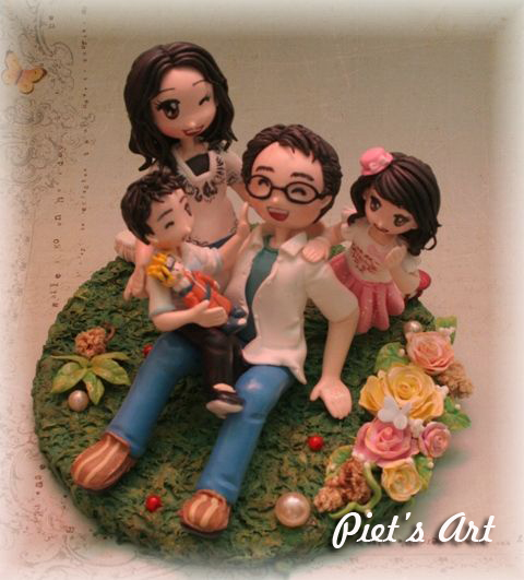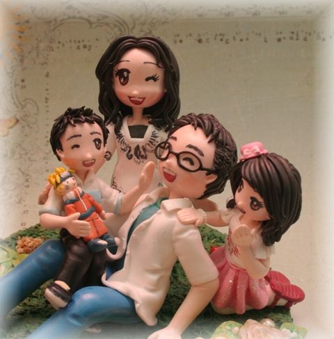 Fun time with family…inilah tema yang kubuat kali ini. Dan ini kubuat untuk seorang teman SD-ku. Kita sekelasnya cuma pas SD soalnya :p. Namanya lengkapnya Carolus B. Widyatmoko, nama bekennya Kokok *udah minta ijin dan boleh mencantumkan nama hihi, tengkiu yaa Kok ^_^*. Sekian lamaaaa ga kontak, lewat fb aku boleh terhubung lagi dengan teman2 SD, SMP dan SMA. Wheeewww…senangnya, memang kemajuan teknologi sekarang canggih ya, untung juga ada fb hehe… :p. Clay ini dipesan untuk acara spesial tentunya, karena itu aku ingin membuatkan suatu makna yang berkesan dibaliknya. Pertamanya aku cukup bingung juga, tema apa yg ingin kubuat. Setalah berpikir dan berpikir, sambil membongkar foto2 family Kokok di fb untuk input data, akhirnya aku mulai mendapatkan gambaran imajinasi figur family mereka yg ingin kubuat. Aku ingin memberi kesan akrab, santai dan hangat. Karena dr foto2 yg kulihat, itulah yg kutangkap dari keluarga mereka….kesannya fun, warm, really a happy and good family ^_^.